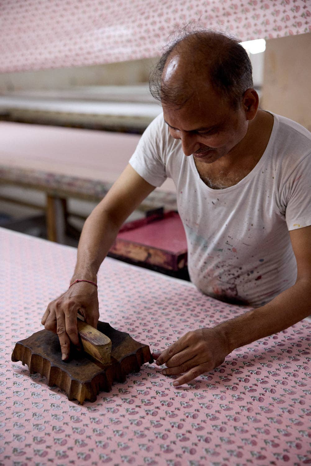 These beautiful cotton toiletry bags are block printed by artisans and handmade in small batches, this quilted wash bag is made using soft luxurious organic cotton.