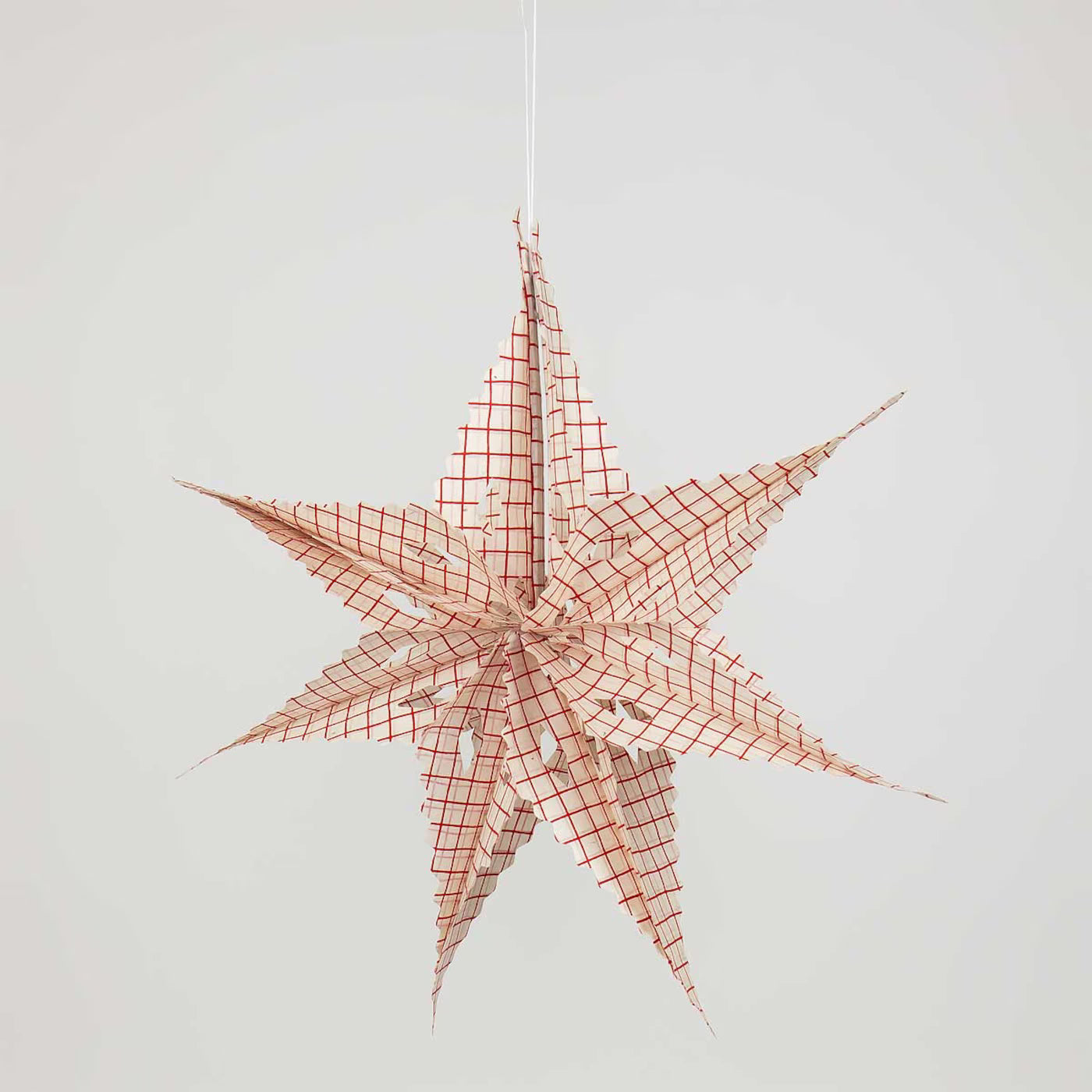 Large Handmade Paper 'Sirius' Star Decoration - Red & White Grid