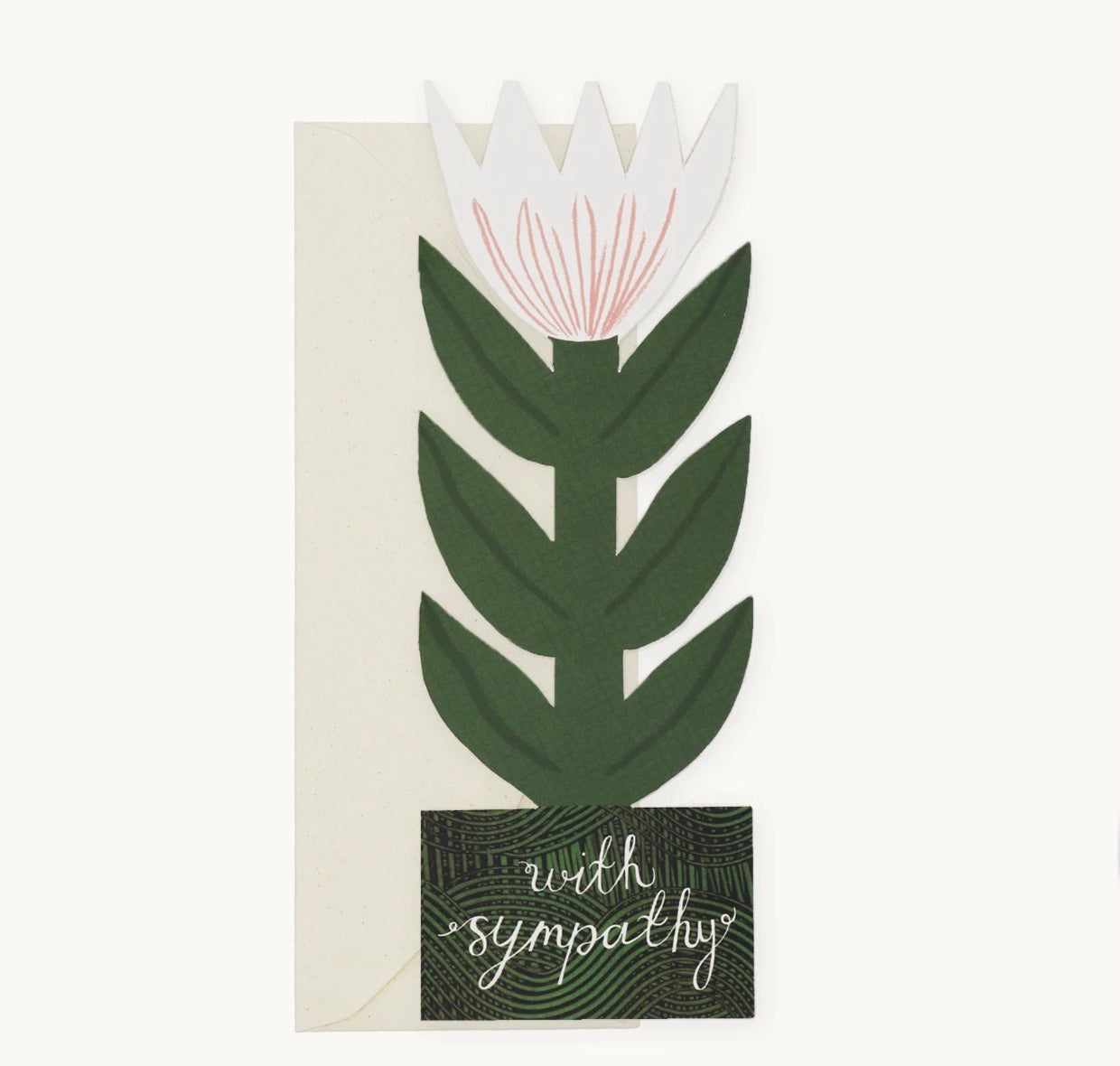 This beautiful lily card folds out to become free standing with the message 'with sympathy' on the base.