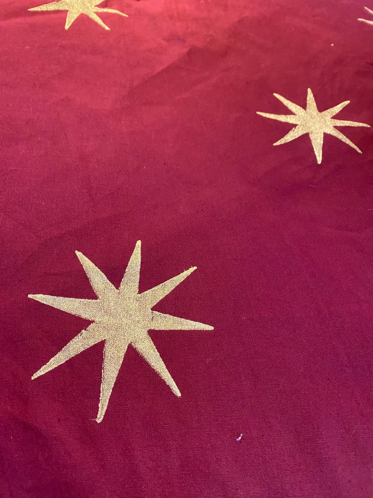Handprinted in by artisans in India, this cotton tablecloth is the ideal centrepiece for Christmas dining.