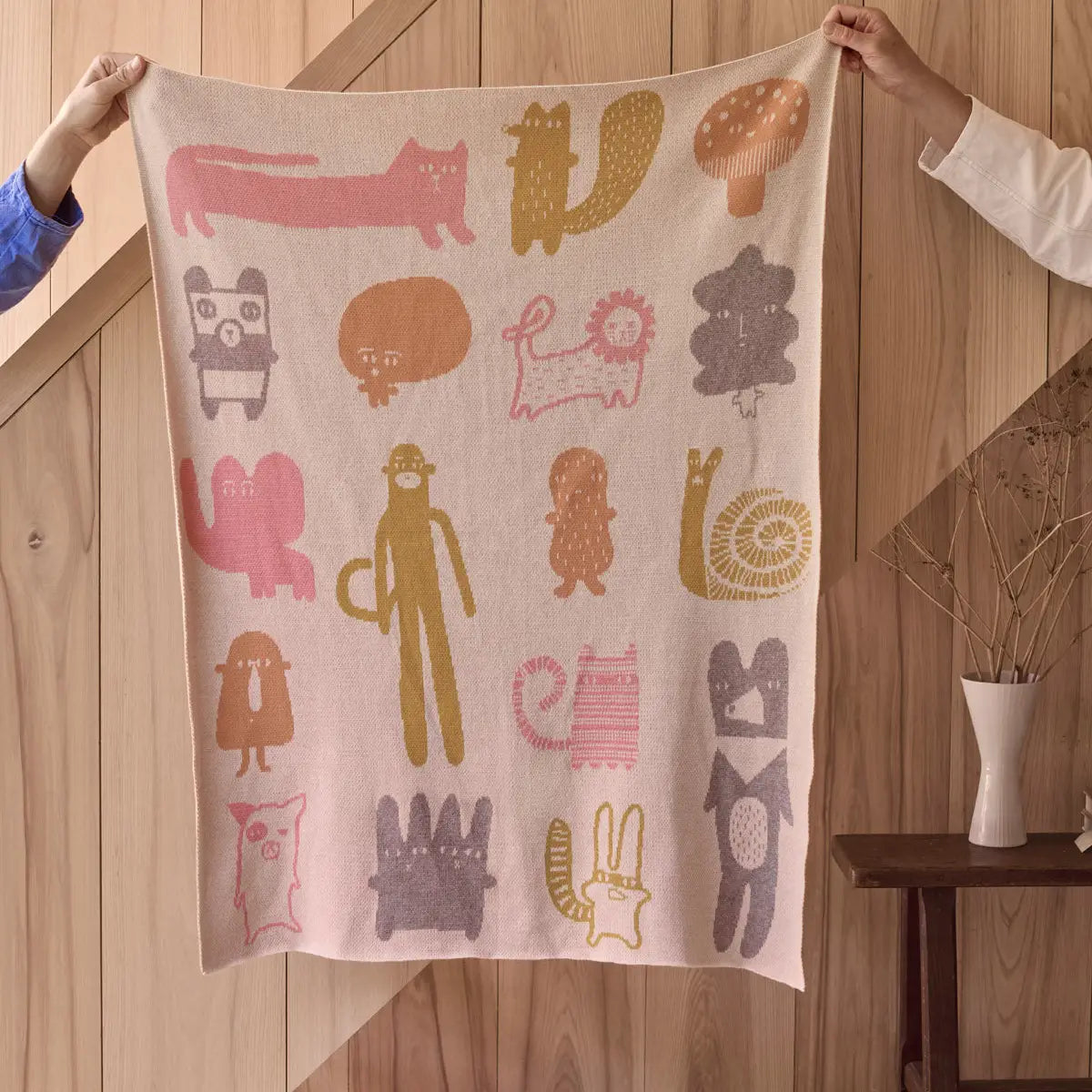 A soft and super special organic cotton mini blanket, scattered with friendly creatures. Warm, breathable, and just the right size for naps, cuddles, or impromptu dens. Made for tiny humans, but admired by fully grown ones too.