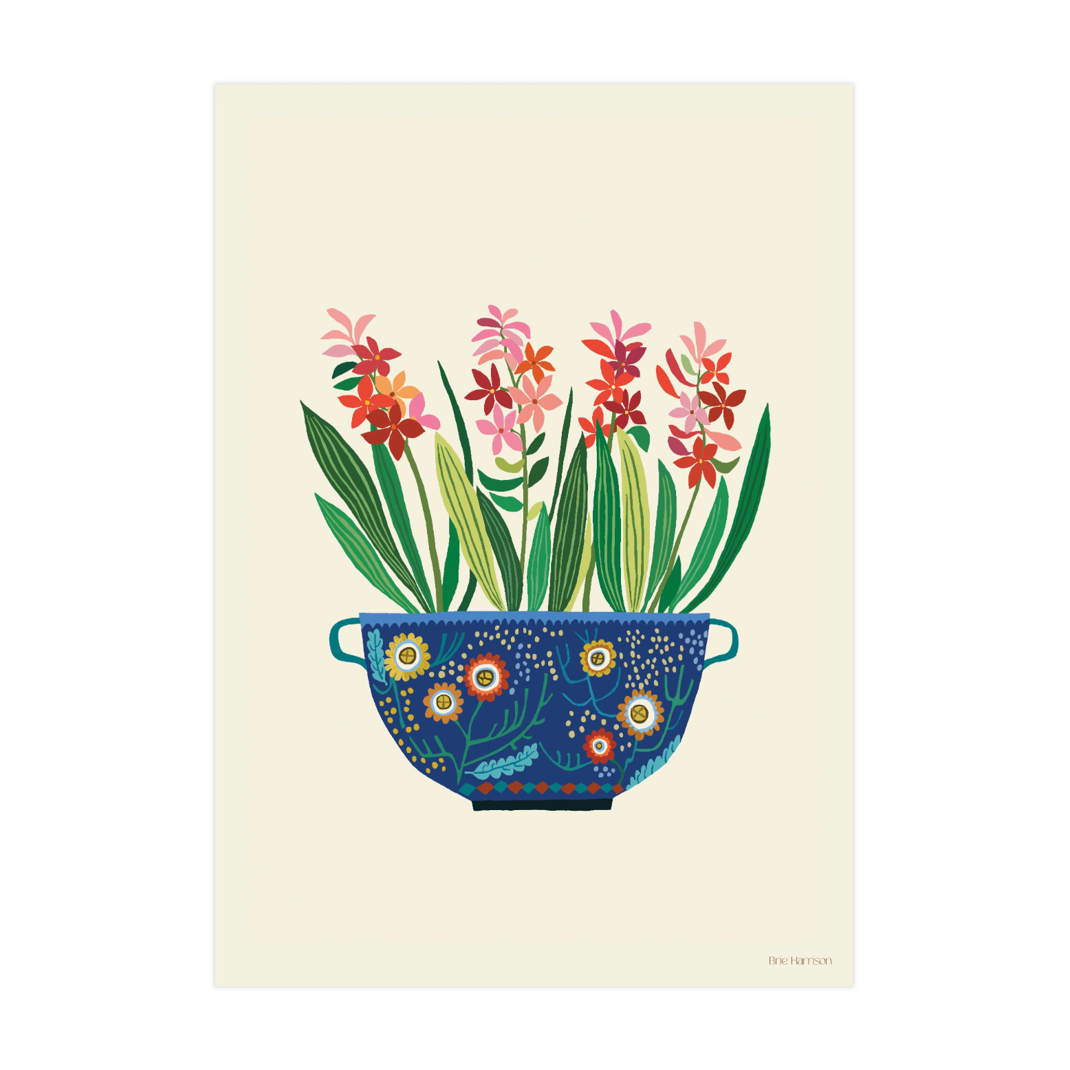 A beautiful botanical 'Hyacinths' print, designed and printed in Suffolk onto 300gsm sustainably sourced textured paper by artist Brie Harrison.