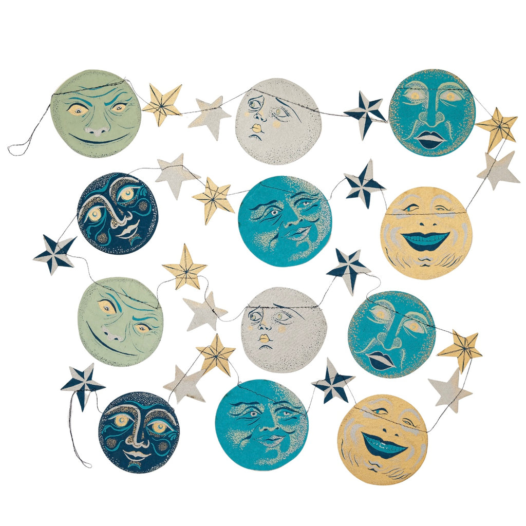 Hand-Printed Man on the Moon Garland