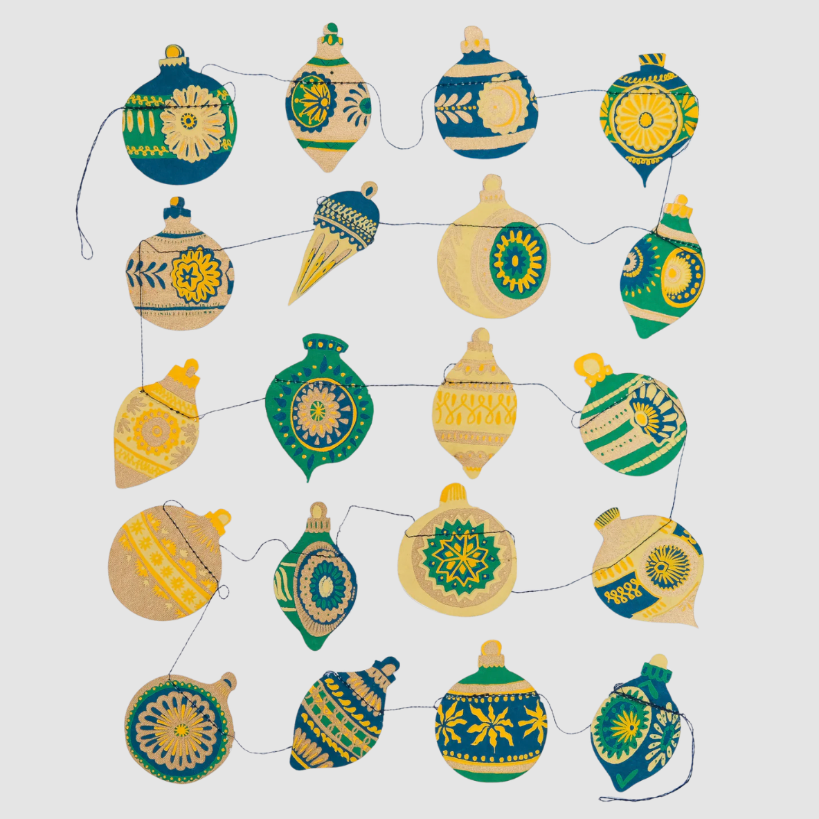 Hand-printed paper garland, featuring a three-metre long christmas ornaments repeat to create a fun, festive and cosy garland!