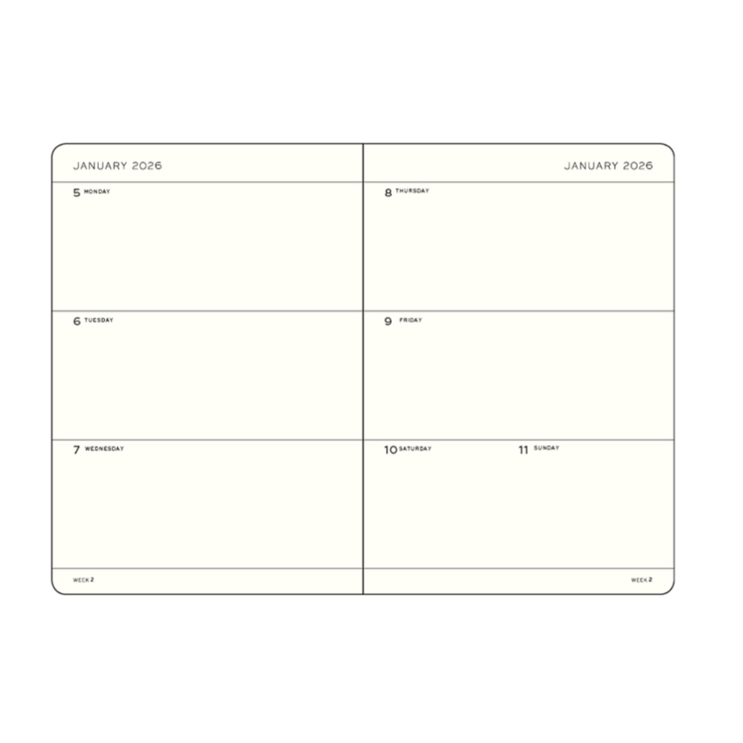 The perfect pocket sized planner companion featuring one week on a double-page spread and all the familiar overviews and details you'd expect from a Leuchtturm planner. This 12-month planner runs from January 2026 to December 2026 and includes a 3 year overview, a project planner, and two bookmarks to help you keep track of key dates and pages.