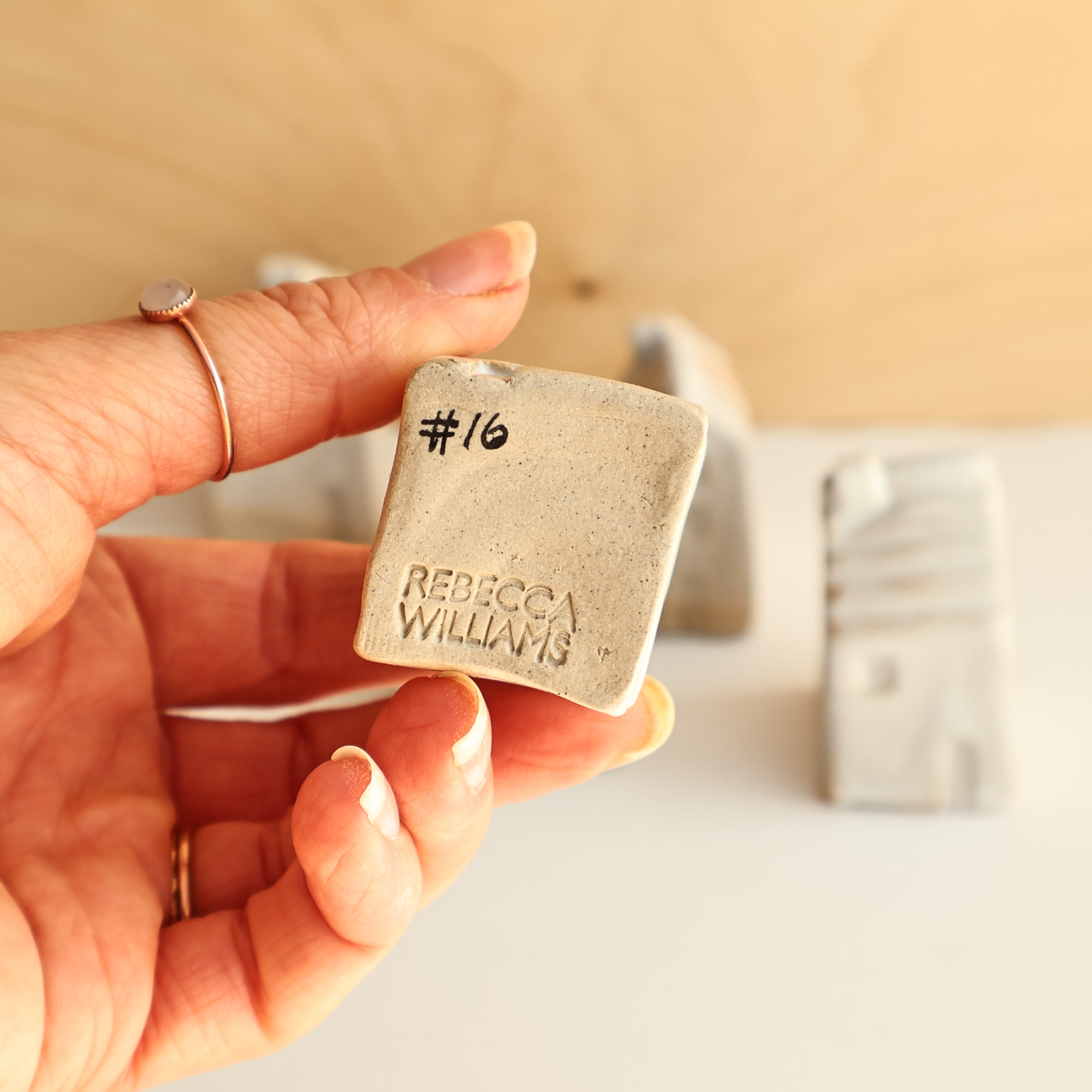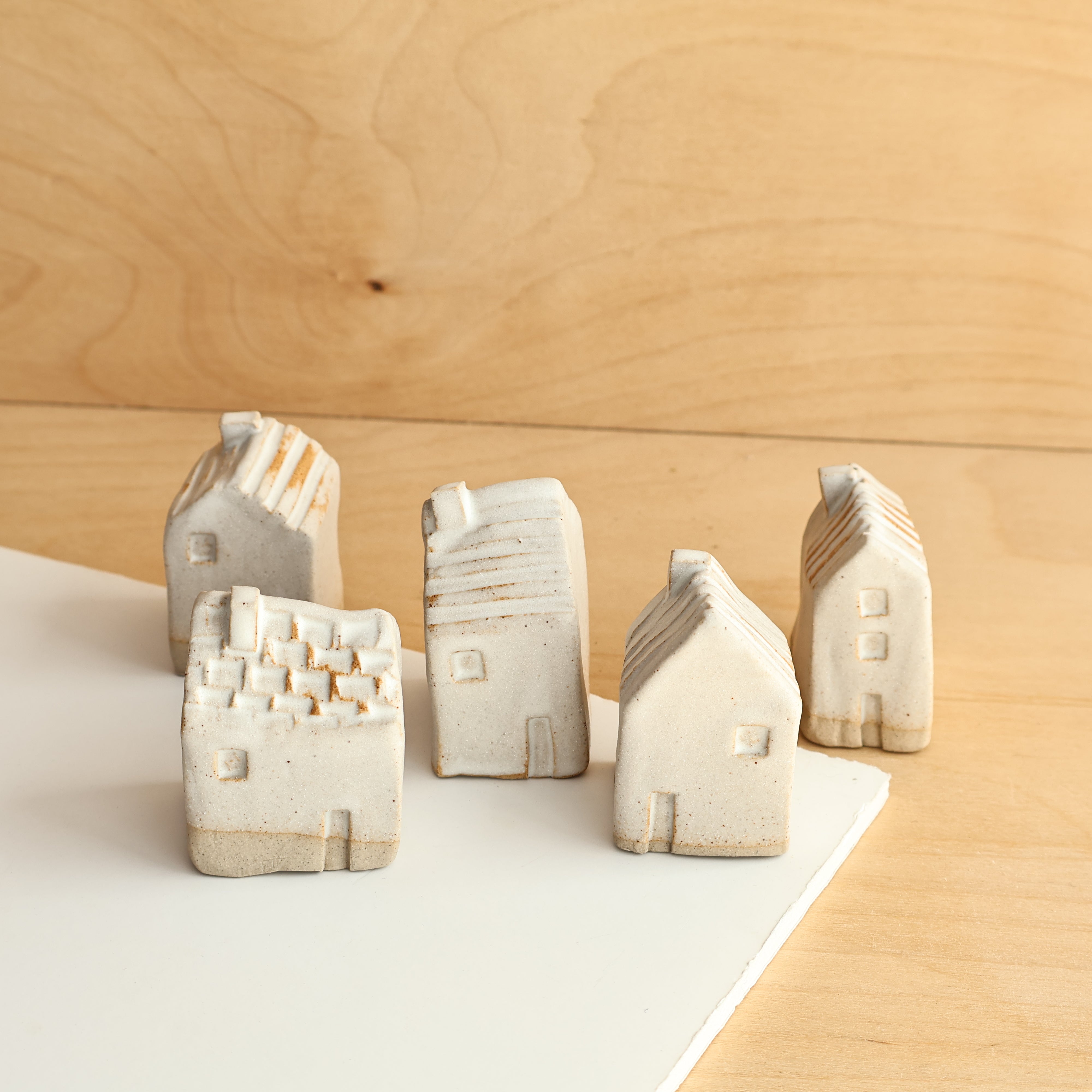 Each house is entirely unique. Handmade markings create the look of a roof and windows, and the number on the base of each house indicates it's unique number in the collection.