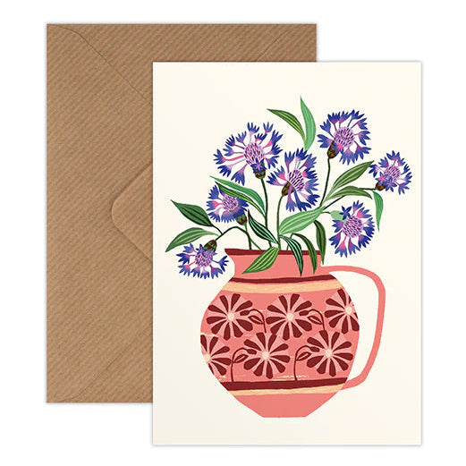The card is printed on 100% recycled card. Blank inside and includes good quality brown kraft envelope, both are then packed in a clear cellophane envelope.
