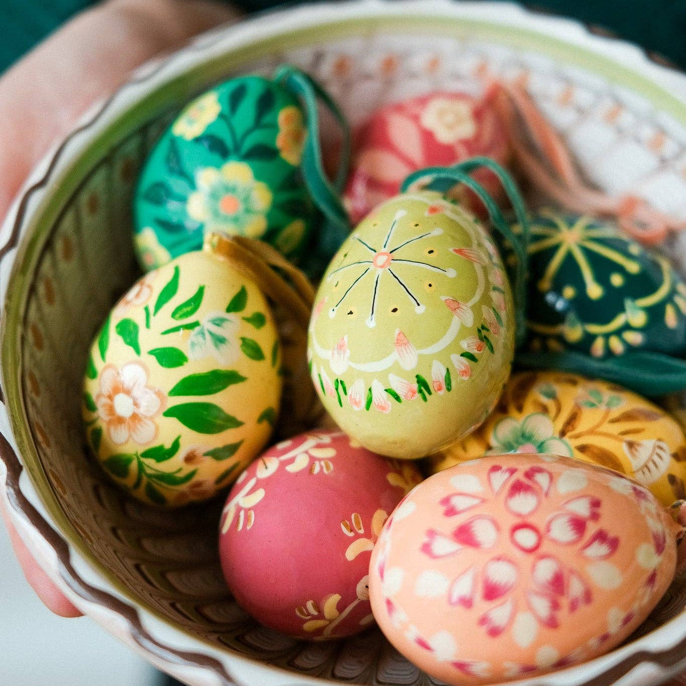 Celebrate Spring with this hand-painted decorative egg, perfect for brightening up your home with colour and intricate patterns. Display in a bowl or hide them away for a very luxurious egg hunt!