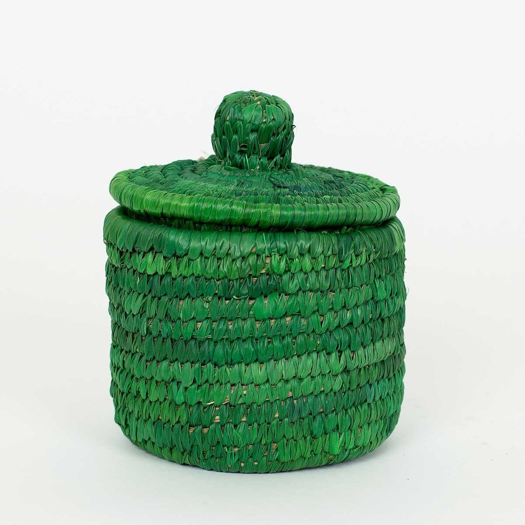 A sweet little storage basket with matching lid made entirely out of palm leaves by women in rural Bangladesh. A special handmade and fair trade piece, perfect for keeping cotton pads, jewellery or anything you want kept handy!