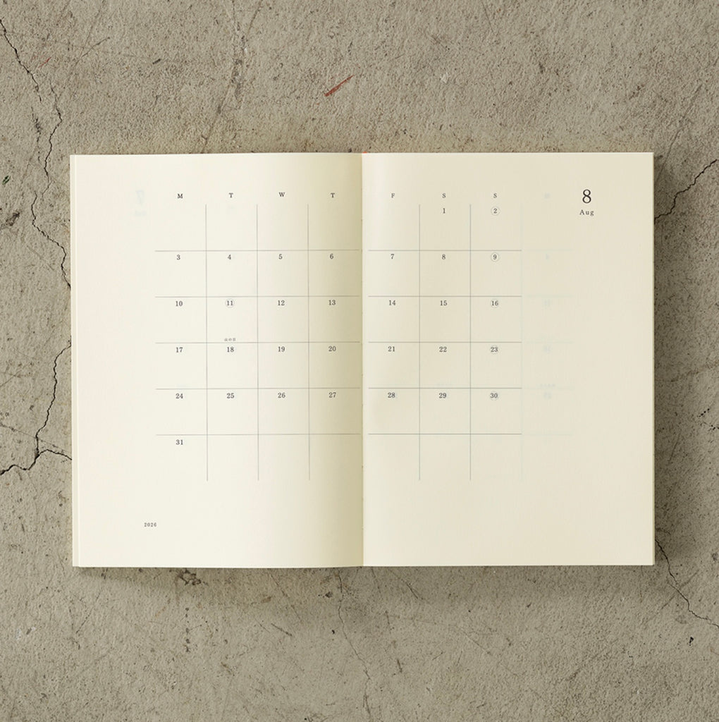 Midori 2026 Notebook Diary - A5 Monthly Grid