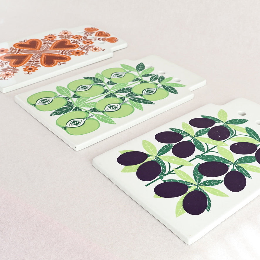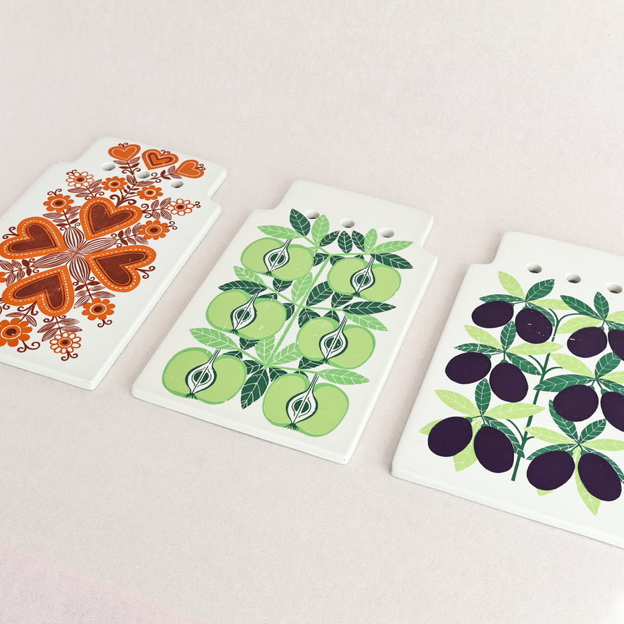 Beautifully rare ceramic boards by Arabia of Finland. There are three designs available, all in good vintage condition with some signs of age (please see photos).